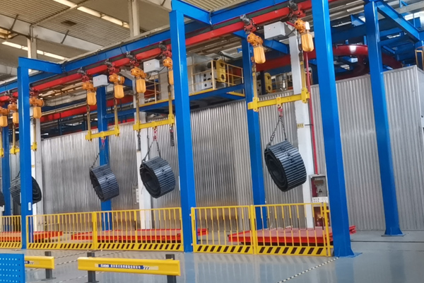 - ??特殊工況兼容??:牽引鏈與軌道系統(tǒng)耐受-20℃至+180℃工況(高溫段可選配陶瓷襯板或耐熱鋼材質),可穩(wěn)定穿越300℃以下高溫烘干隧道、強腐蝕性化學處理槽(如酸洗磷化池pH 2~12)、電泳涂裝絕緣區(qū)、高壓噴漆房(防爆認證可選)及-18℃深冷存儲庫等高危區(qū)域,替代人工完成高風險作業(yè)。